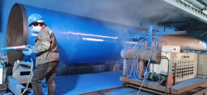 以下是D1420大口徑涂塑鋼管的涂塑加工、施工現(xiàn)場