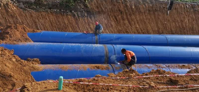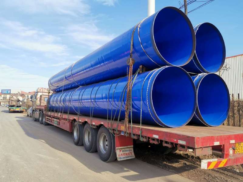 2020年友誠管業(yè)為成都大運(yùn)會北部水廠供貨的涂塑鋼管,就是典型的大口徑涂塑鋼管:基管采用D1420螺旋鋼管,防腐方式為內(nèi)外環(huán)氧粉末涂塑,顏色為藍(lán)色。大口徑涂塑鋼管定尺為12米,一輛半掛車可以裝載4支D1420大口徑涂塑鋼管。